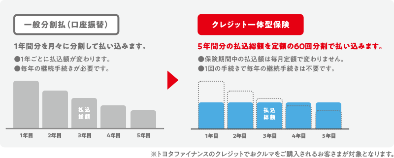 • クレジット一体型保険は、トヨタファイナンス株式会社を保険契約者とする「コンビにプラン」「カップるプラン」「まとめてバリュープラン」「クレぴたプラン」の総称です。